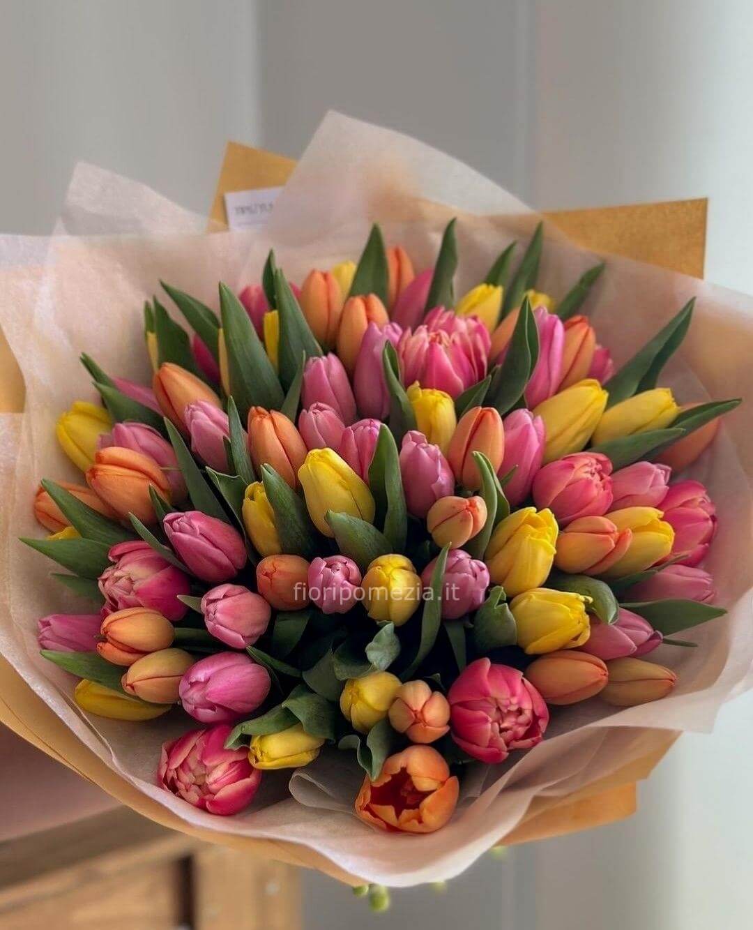 Realizzato con fiori freschissimi, ogni bouquet è composto da tulipani selezionati con cura, garantendo un prodotto di alta qualità artigianale.