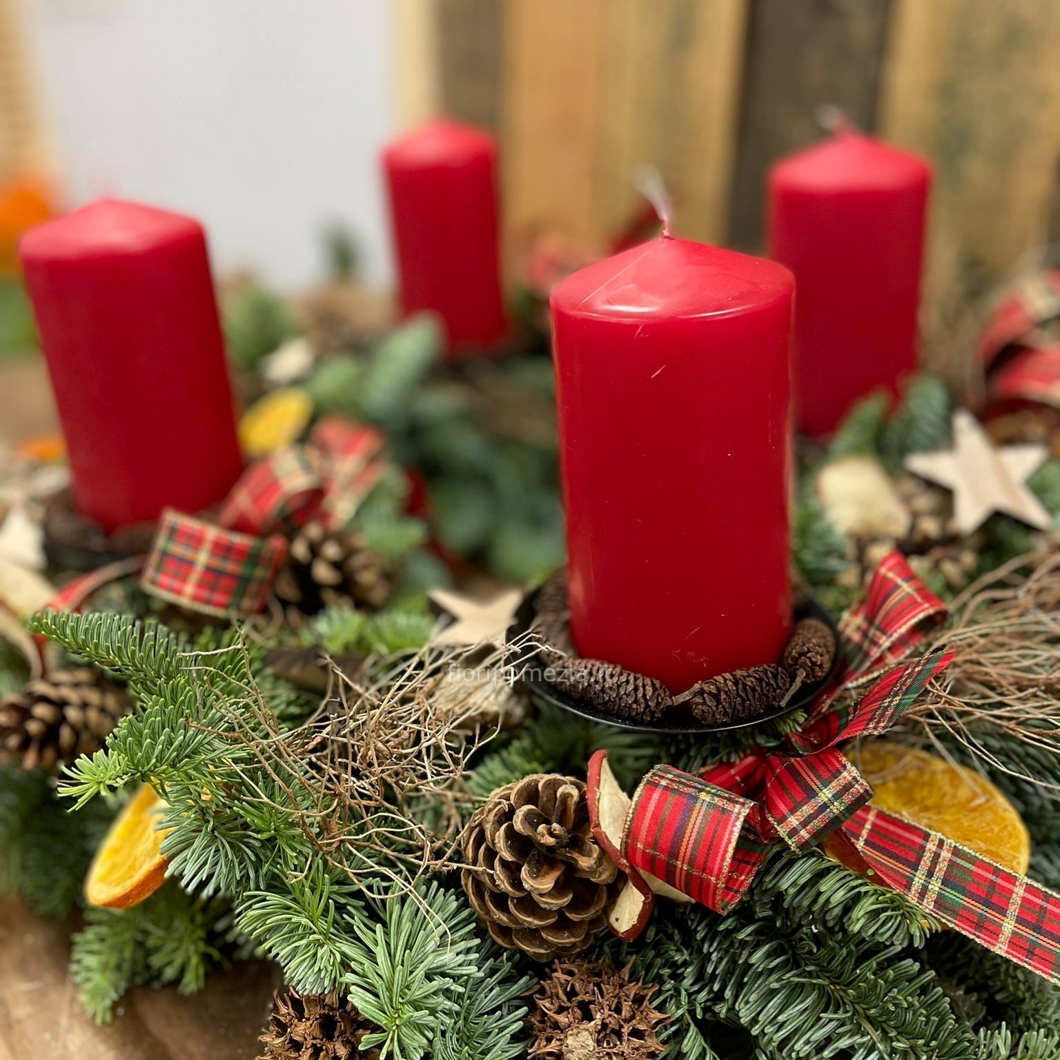 Scopri la nostra esclusiva Ghirlanda di Natale dell'Avvento con candele, realizzata con cura artigianale nel cuore del nostro Fiorista Aprilia.